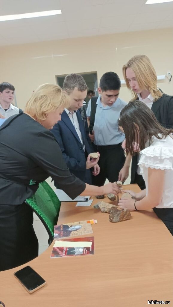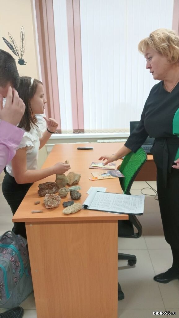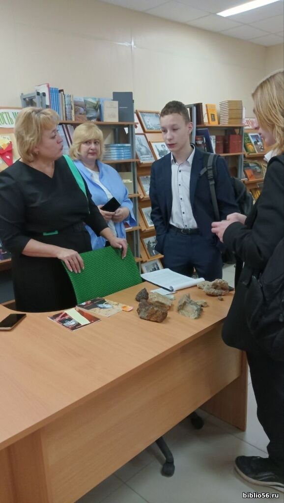 Ребята посмотрели мультимедийную презентацию с фотографиями и отрывками из историко-документального фильма о городе С. Алтунина «Оглянись». Особый интерес школьники проявили к образцам минералов из коллекции библиотеки.