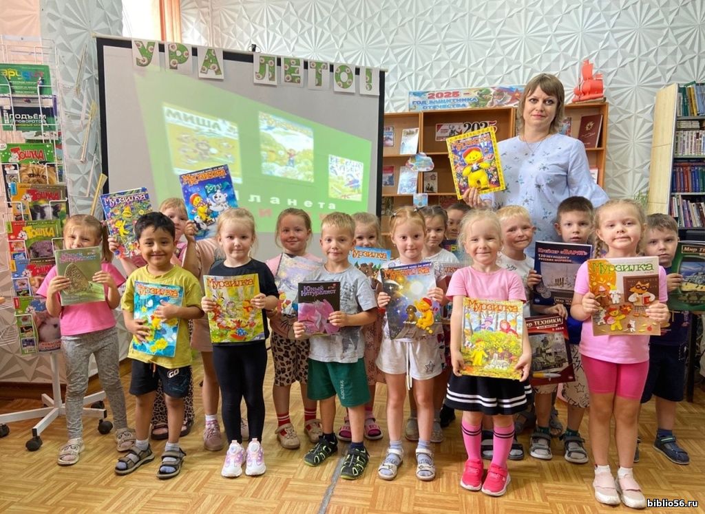 Библиотекарь рассказала детям о первом российском детском журнале «Детское чтение для сердца и разума», который издавался в 1785–1789 годах. Затем издание журнала прекратилось на 200 лет. И только в 1997 году журнал продолжил свою деятельность до настоящего времени. Особое внимание библиотекарь уделила журналу «Мурзилка», которому в этом году исполнился 101 год.